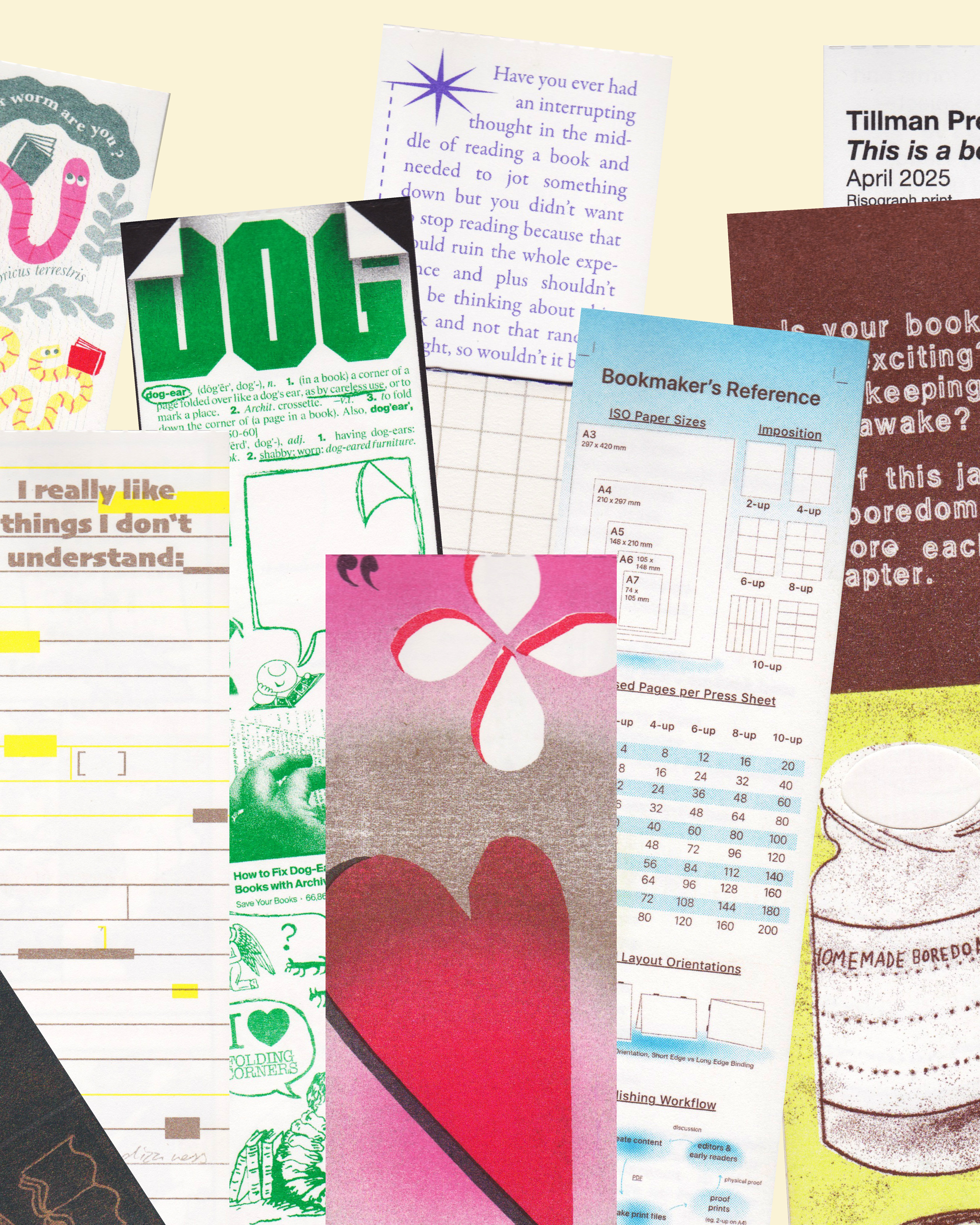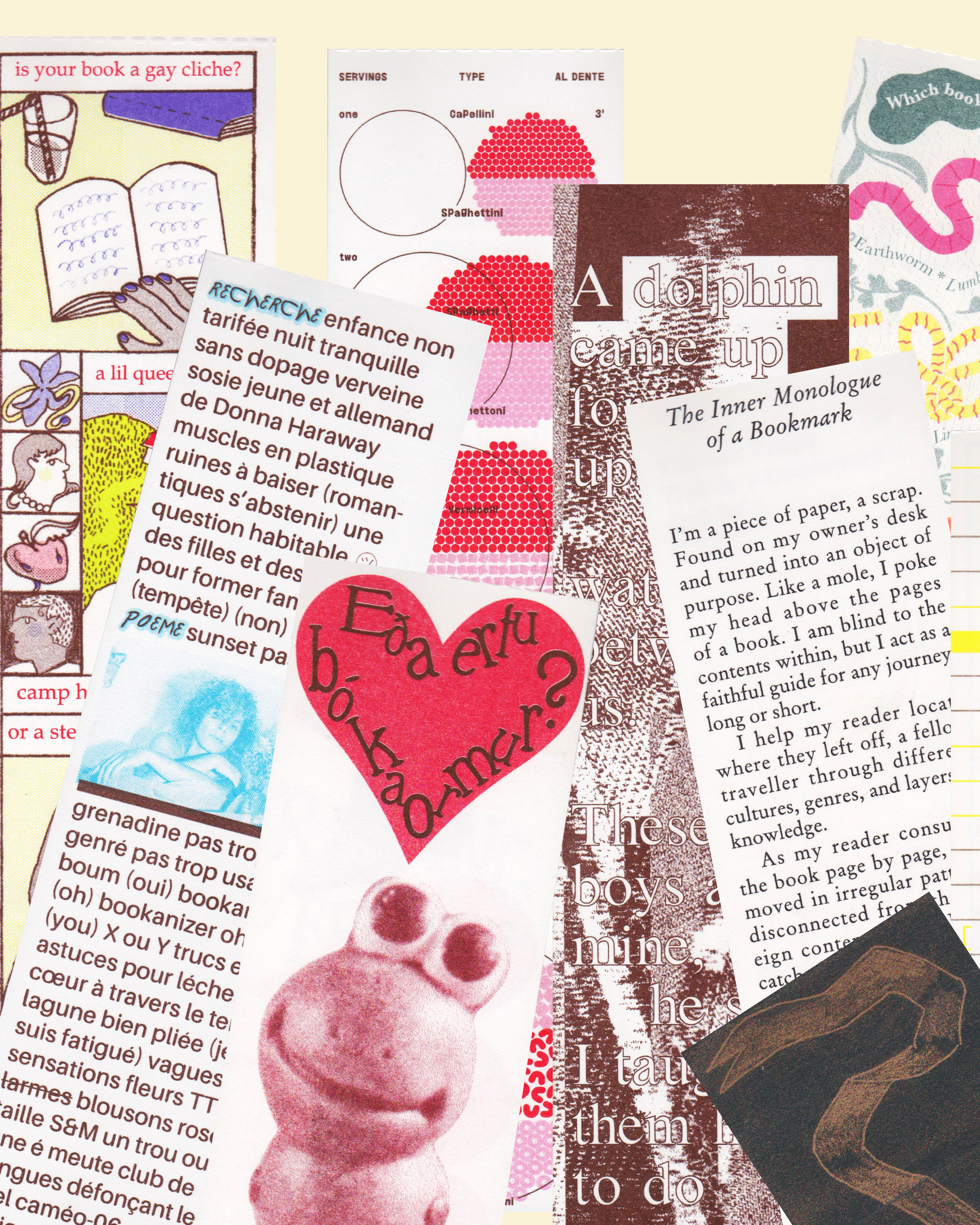 The Book’o’Mark features 30 bookmarks, with contributions from: Rahel Zoller, Tillman Press, Johanna Maierski (Colorama), Pseudo Press, CUTT Press, Formal Settings, etaïnn zwer, Rachel Pafe, Formal Settings, Margot Sounack, Tabs, Taxonomy Press, Jae Kyung Kim / einBuch.haus & ENKR, Lady Liberty Press, Juliette Patissier, Pauline Agustoni, hooops collective, Ilona Samcewicz-Parham, Florian ∞ Emden, Lily Orset, Nomad Papaya Books, Esther Depret, WayBad Press, Small Editions, Vala Birna, Hugi Ólafsson, Roman Karrer, Hurrikan Press, Dani Neira, & ANEMONE.