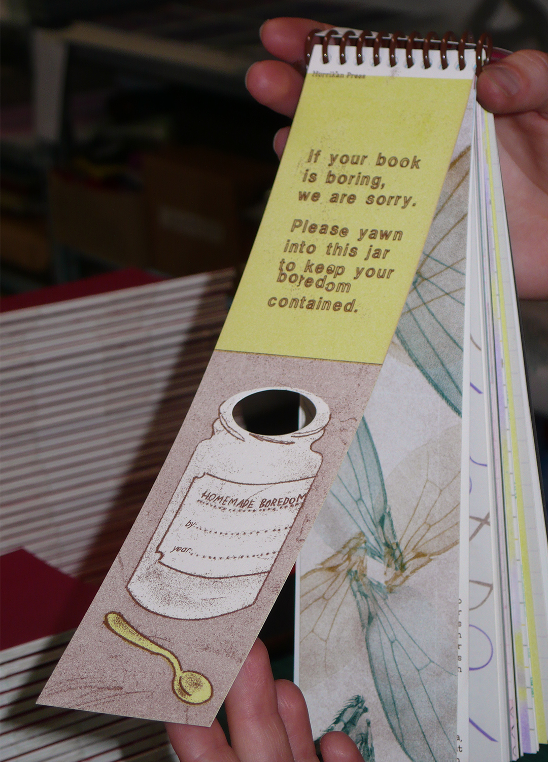 Lauria of Pseudo Press invited me to contribute to the Book’o’mark, with the prompt “creating a bookmark which has a function beyond page demarcation”