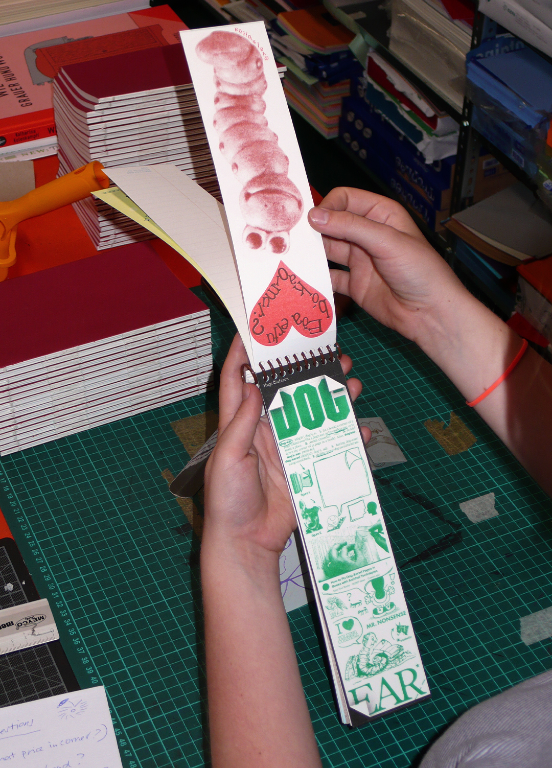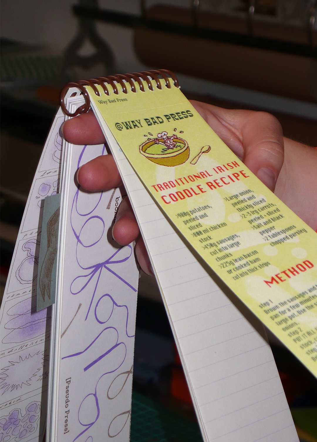 Printed with 13 riso ink colors, Spiral bound, filled with amusements, tools and objects.