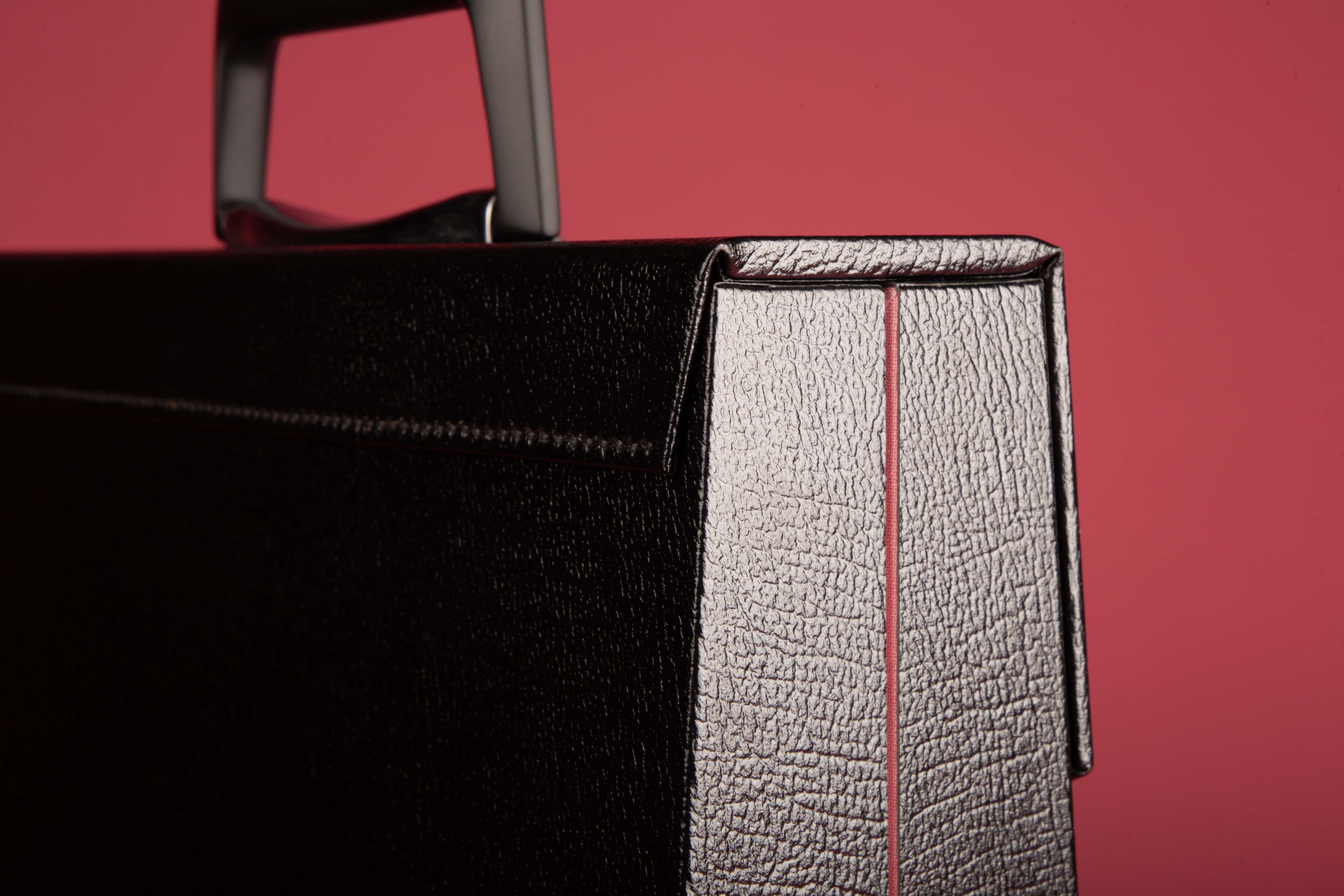 The one-off 51st edition was made to be a cross between a handbag and a vintage record carrying case. The case is secured with a belt and buckle, and opens to reveal the lathe-cut transparent record standing in the centre, a 50ml bottle of the custom fragrance housed in a faux cigarette packet sitting at its feet. The perfume features a custom made lid, and affixed to the front of the bottle is a hand stamped Verlo seal in black wax. The embroidered lace mouchoir and screen printed lyric sheet are housed in a pocket in the back of the case, along with a signed and stamped calling card featuring a special message from Verlo. A hidden magnetic catch keeps them secured in the case behind the screen printed credits.All products were designed by Tilly de Verteuil and handmade in England at the state51 Atelier.